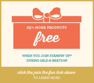 If you live anywhere in Australia you can place your Stampin' Up! order through me and it can be shipped right to your door (by Australia Post) for 5% of your order total, minimum shipping $5.95. If you click on the catalogue symbols on the sidebar you can view them online. The 25th Anniversary catalogue will be uploaded after it goes"live" late this week.Sale-a-bration has begun, so for each $100 of your order you get to choose one item from 19 exclusive stamp sets, designer patterned paper, or buttons & ribbon.