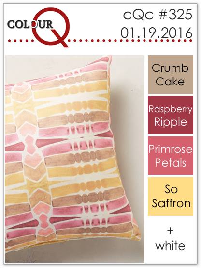 Since I'm on holiday, I have extra spare time - YAY! Bonus crafting time is always good, yes? It coincided with Colour Q posting their latest colour challenge. I love what the design team have done using these colours. Make sure you click on the link and take a look too.I have been sorting my open packets of DSP, but found very little in Raspberry Ripple or Primrose Petals. Just one little piece of paper, but I do have each shade in ribbon, so managed to come up with that combination. Of course, So Saffron, Crumb Cake and white are all current colours so no problem finding them!