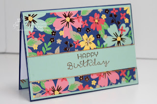 One more, again using the specialty DSP Affectionately Yours, and this is covered in copper flora. Sadly, you only get one 12" X 12" sheet of each of these 'special' specialty papers in a pack, so I'm trying to make them go as far as possible!!! A narrower strip for the sentiment, again from Cottage Greetings. It is a simple sketch, and can be used in so many ways.